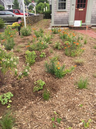 Our main criteria for selecting plants for this project is that they all had to be native not just to New England but specifically to Cape Cod. We needed plants that would thrive in our sandy and acidic soils with little to no manual intervention after they were established. Since we are right on Main Street, we wanted plants that would stay relatively neat looking and provide some color and textural interest throughout the year. Plants that would provide food and habitat for pollinators was key as well.