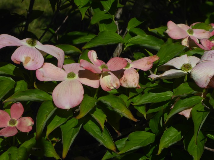 I would greatly love to plant a species dogwood tree, (Cornus florida) – I grew up with a beautiful pink dogwood right outside our front door. But there is too much risk of anthracnose disease so I couldn’t plant it. I ran across this beauty in a nursery, Cornus ‘Rutgan’ Stellar Pink, and had to have it. With a bit of research I learned that is it a cross between the Cornus florida and the Cornus kousa, which gives it resistance to anthracnose while still retaining most of the original features like this pink bloom. Since it’s as close as I’m going to get to the original, I’ll take it.