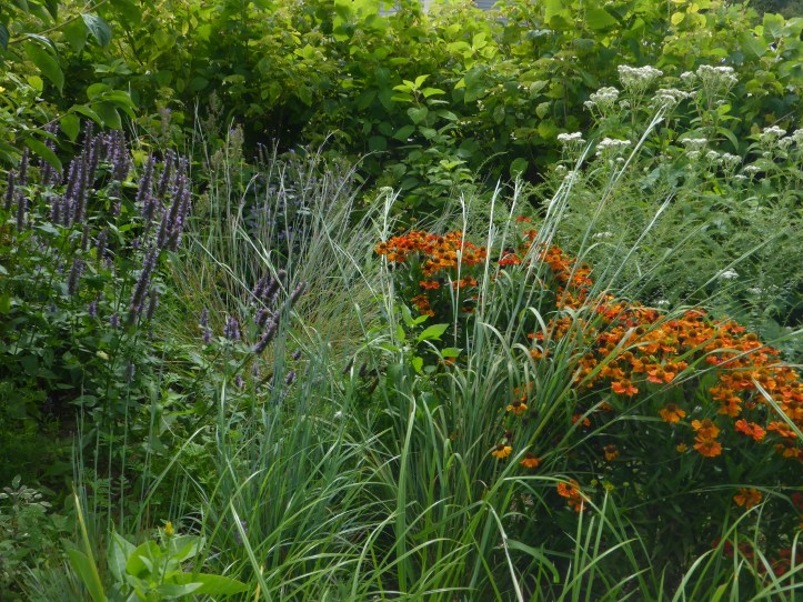With all this percolating in my head, I decided it was time to extend my pollinator planting. I already have multiple oaks and native cherries, and goldenrod and wild strawberry are everywhere, so that’s a solid foundation. Last year I replanted a long border into a mini-meadow with grasses and late-summer pollinators.