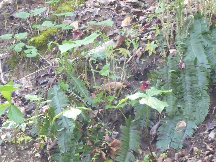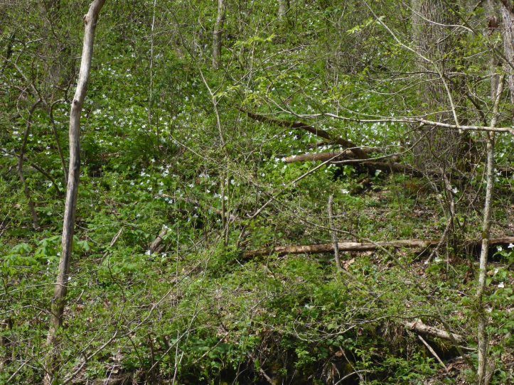 Two springs ago (late April) we had the fun of a bike trip with friends in southwestern Virginia, on a trail called the Virginia Creeper trail. The trail was named after the local railroad that used to creep up the sides of the mountain, and the train in turn took its name from the native Virginia creeper vine (Parthenocissus quinquefolia). The bike trail was lovely but our progress was somewhat erratic as we kept stopping to take pictures of scenic views and more importantly, the wildflowers blooming on the side of the trail. Enjoy!