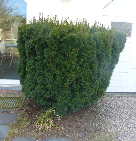 In the spring 2019 I trimmed the yew a bit and installed the plants as designed. A year later, the sedge has expanded and the pachysandra is coming along nicely. Maybe next year they will fill in that front corner between them, but maybe not as that corner is right in the pathway from car to side door.