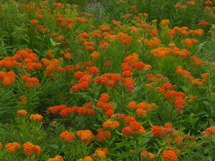 Can I start with the most spectacular, successful garden? In 2018 I had the opportunity to design and help install a mini-meadow at the Chatham Conservation Foundation headquarters in downtown Chatham, and posted about the initial installation here. It has been settling in and growing nicely, but well, this year is amazing.The biggest success is the butterfly weed (Asclepias tuberosa). We planted about 40 1-gallon plants in 2018, and that first year the seedheads scattered all over the meadow. The second year, we had more plants and lots of monarch butterflies. This year there were still more plants, and the color is explosively bright.