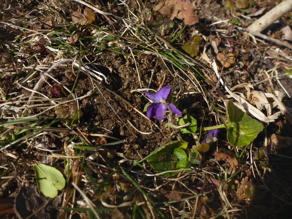 This sweet little violet popped up in a protected spot outside the shed door on March 21. Since then dozens of purple and white violets have appeared scattered over my Cape Cod lawn, and there have been a few small insects buzzing around them.
