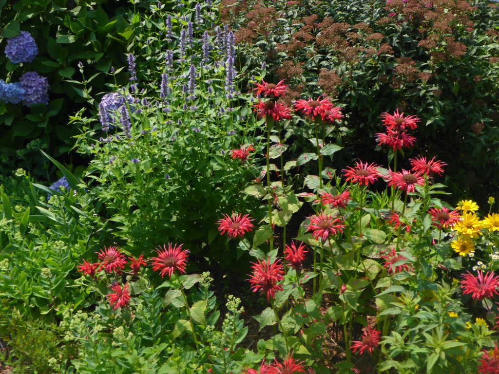 Anise hyssop (Agastache foeniculum ‘Blue Fortune’) and Bee balm (Monarda didyma ”Jacob Cline’) in the Cottage Garden