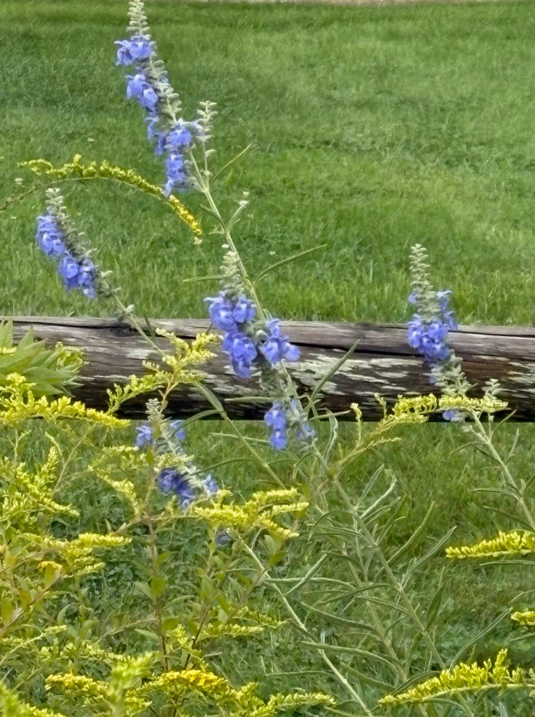 Blue Salvia (Salvia azurea) was the biggest surprise. I planted it several years ago, but it seemed to just fade away. Then suddenly this gorgeous blue flower popped up in the back of the South Border among the goldenrods. This plant is actually native to Massachusetts and is one of the more striking blue native flowers. It grows in full sun and prefers dry-to-medium soils, and it does best in a grouping of other tall plants, such as a meadow, as it can flop without support.